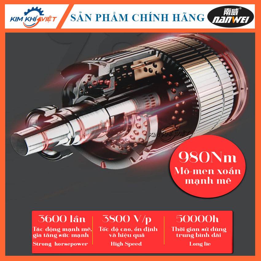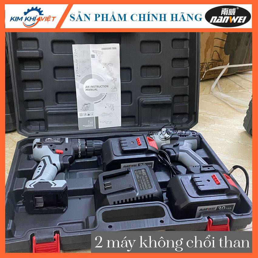Máy siết bu lông + máy khoan pin Nanwei động cơ không chổi than, Pin 15cell.
